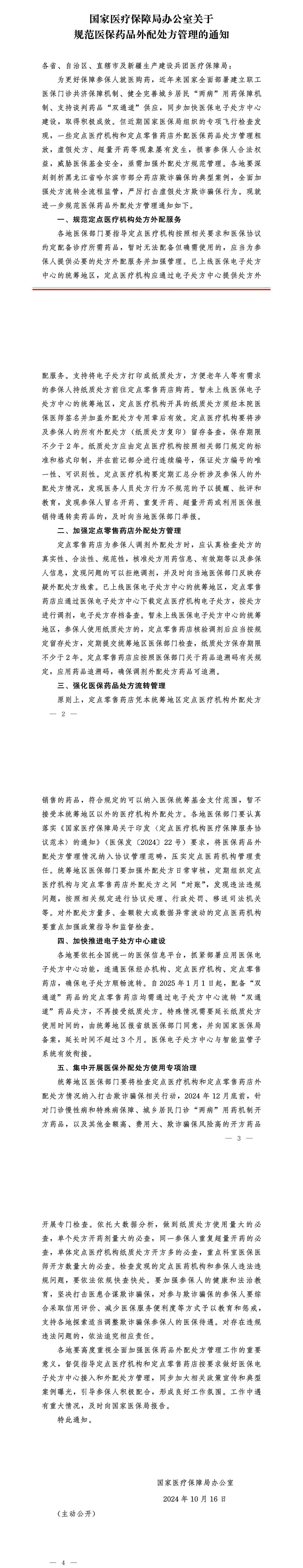 国家医疗保障局办公室关于规范医保药品外配处方管理的通知