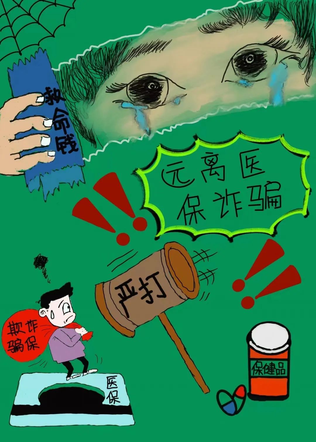 为广泛动员社会各界关注医保基金安全,国家医保局组织开展2024年度打击医保欺诈骗保宣传画征集活动,我局积极组织全市开展集中宣传月活动,重点面向定点医药机构、学校、医保经办机构等征集了打击欺诈骗保宣传画,现将部分优秀作品展播如下。
