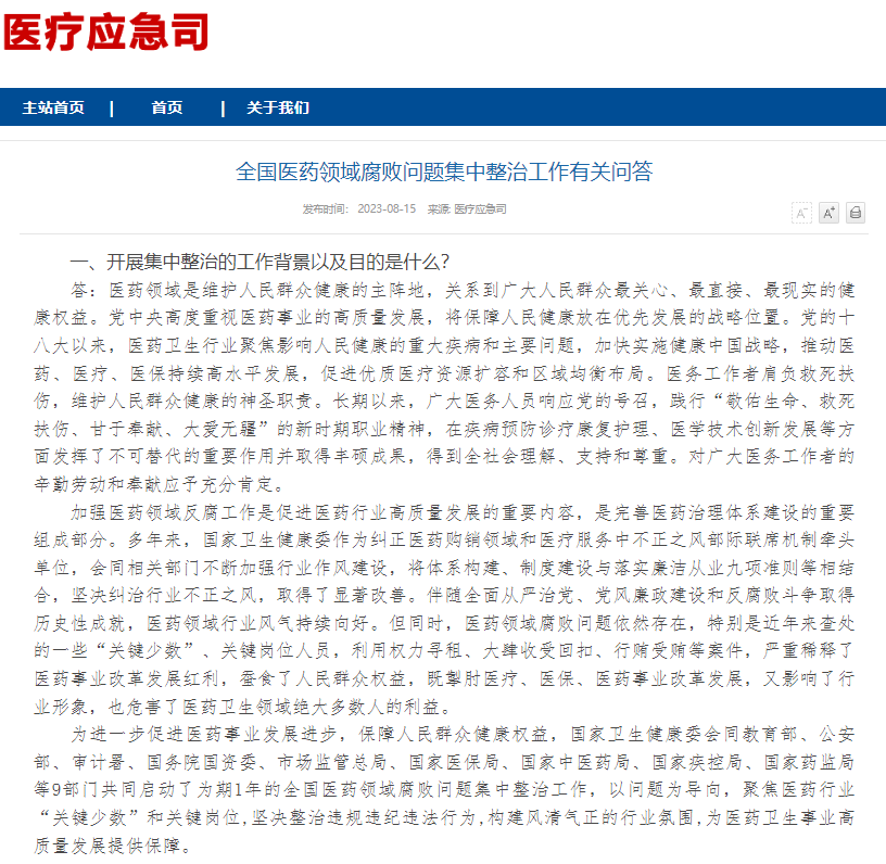 为进一步促进医药事业发展进步,保障人民群众健康权益,国家卫生健康委会同教育部、公安部、审计署、国务院国资委、市场监管总局、国家医保局、国家中医药局、国家疾控局、国家药监局等9部门共同启动了为期1年的全国医药领域腐败问题集中整治工作,以问题为导向,聚焦医药行业“关键少数”和关键岗位,坚决整治违规违纪违法行为,构建风清气正的行业氛围,为医药卫生事业高质量发展提供保障。