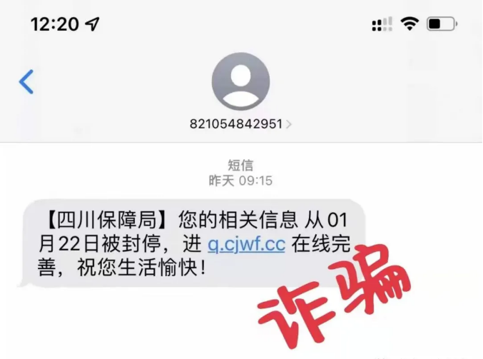 “【四川保障局】您的相关信息从1月XX日被封停,进入q.cfwf.cc在线完善,祝您生活愉快!”
