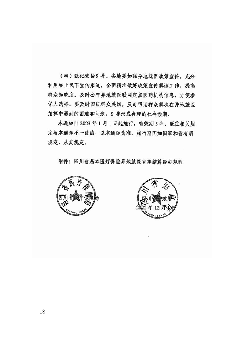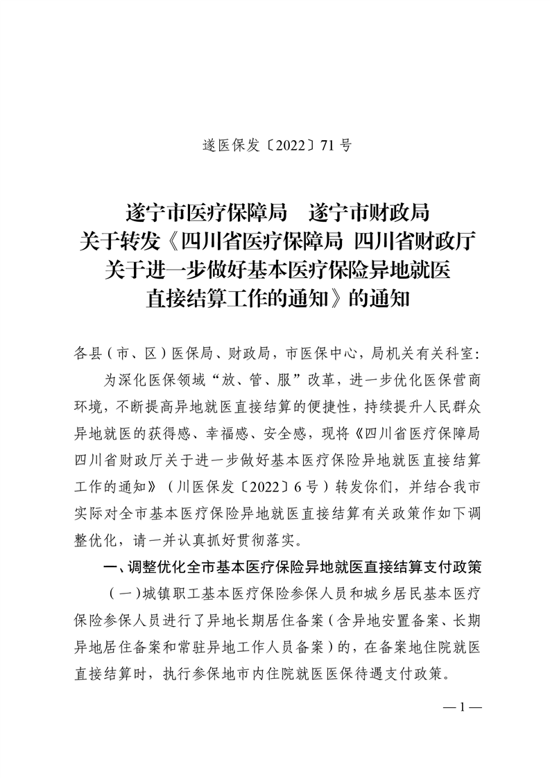 关于转发《四川省医疗保障局 四川省财政厅关于进一步做好基本医疗保险异地就医直接结算工作的通知》的通知