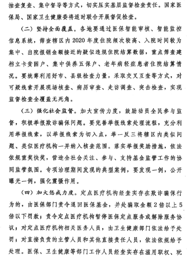 (一)营造良好舆论氛围。各级医保和卫生健康部门要以此次“回头看”工作为契机,继续加大宣传力度,强化典型案例曝光力度,鼓励动员全民参与监督,积极举报欺诈骗保问题,进一步落实举报奖励办法,营造良好的社会监督舆论氛围。