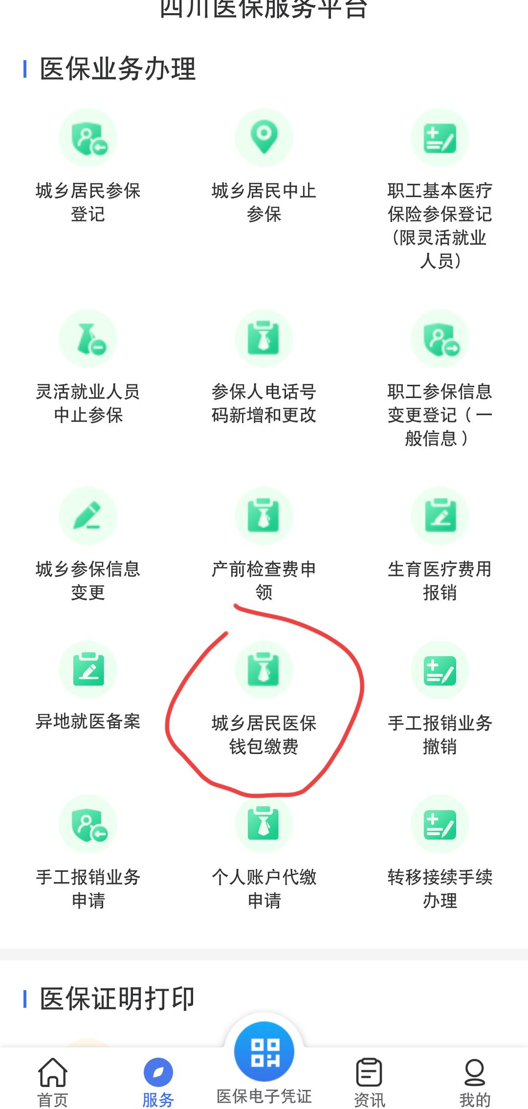 医保钱包里面的资金还可以在“四川医保”APP、“四川医保公共服务平台”微信(支付宝)小程序里面通过“城乡居民医保钱包缴费”功能为本人缴纳居民医保。