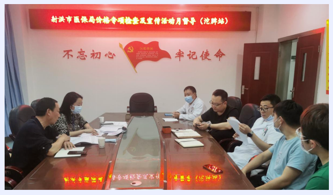 (四)实地督导检查,确保宣传成效。射洪市医疗保障局2022年4月23—24日,对洋溪中心卫生院、沱牌中心卫生院等定点医疗机构基金监管集中宣传月活动开展情况进行了现场督导,并就进一步做好日常宣传、加强基金监管、维护基金安全等方面提出了具体要求。
