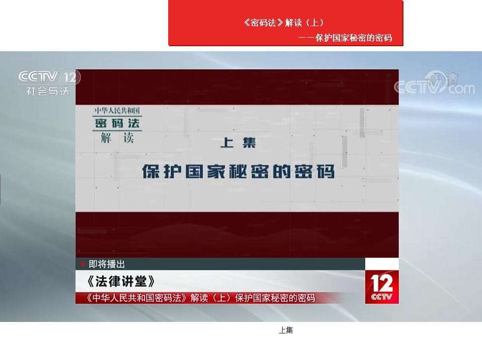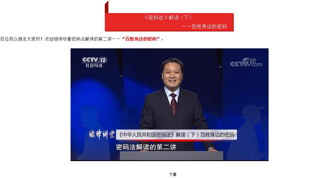 国家密码管理局新闻发言人李国海用两集的时间为大家进行解读,上集为《保护国家秘密的密码》,下集为《百姓身边的密码》。