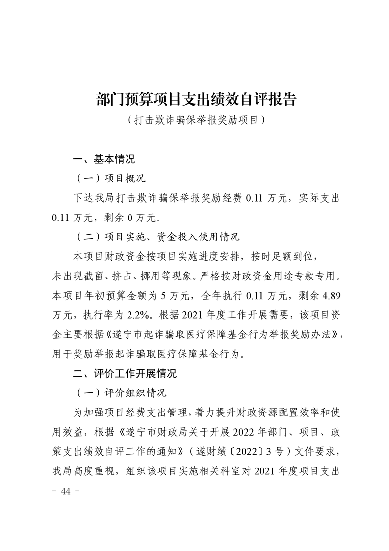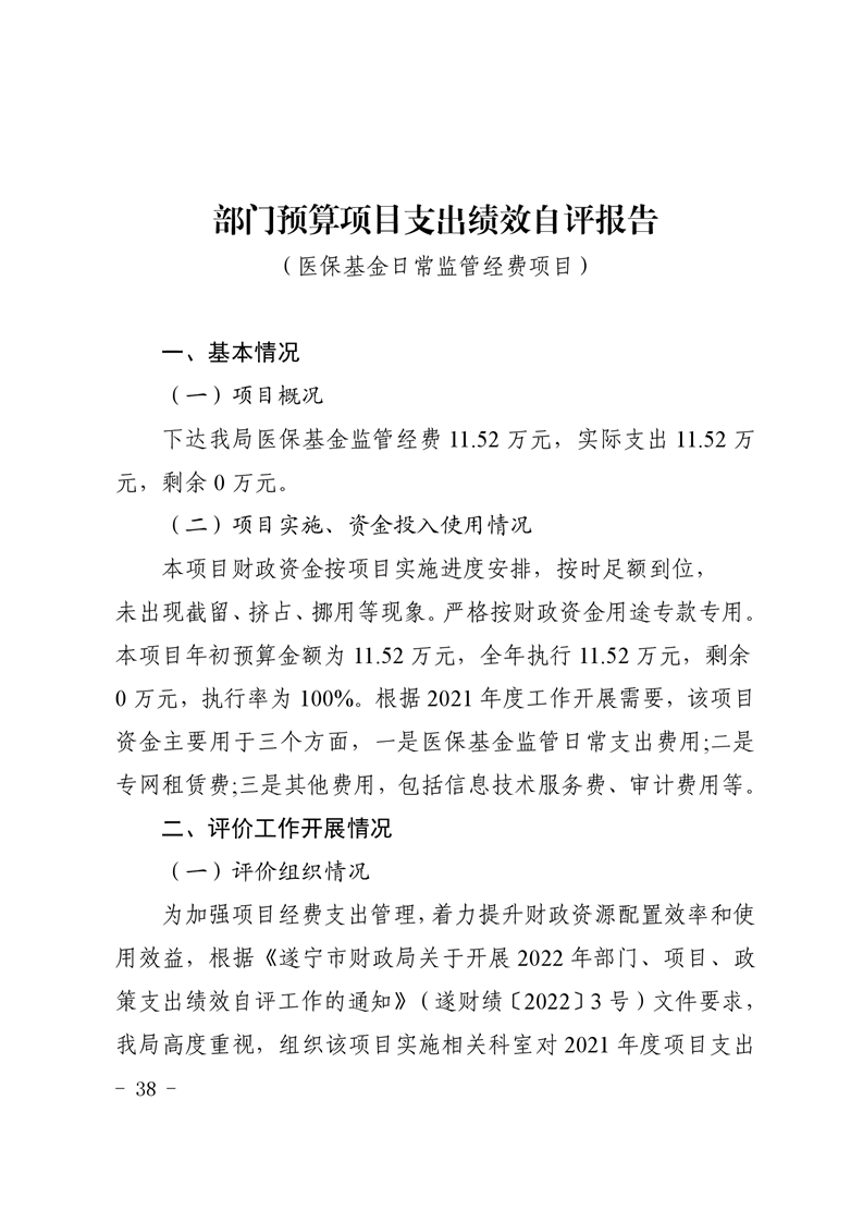 遂宁市医疗保障局2021年度部门决算公开(汇总)