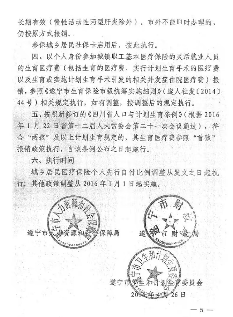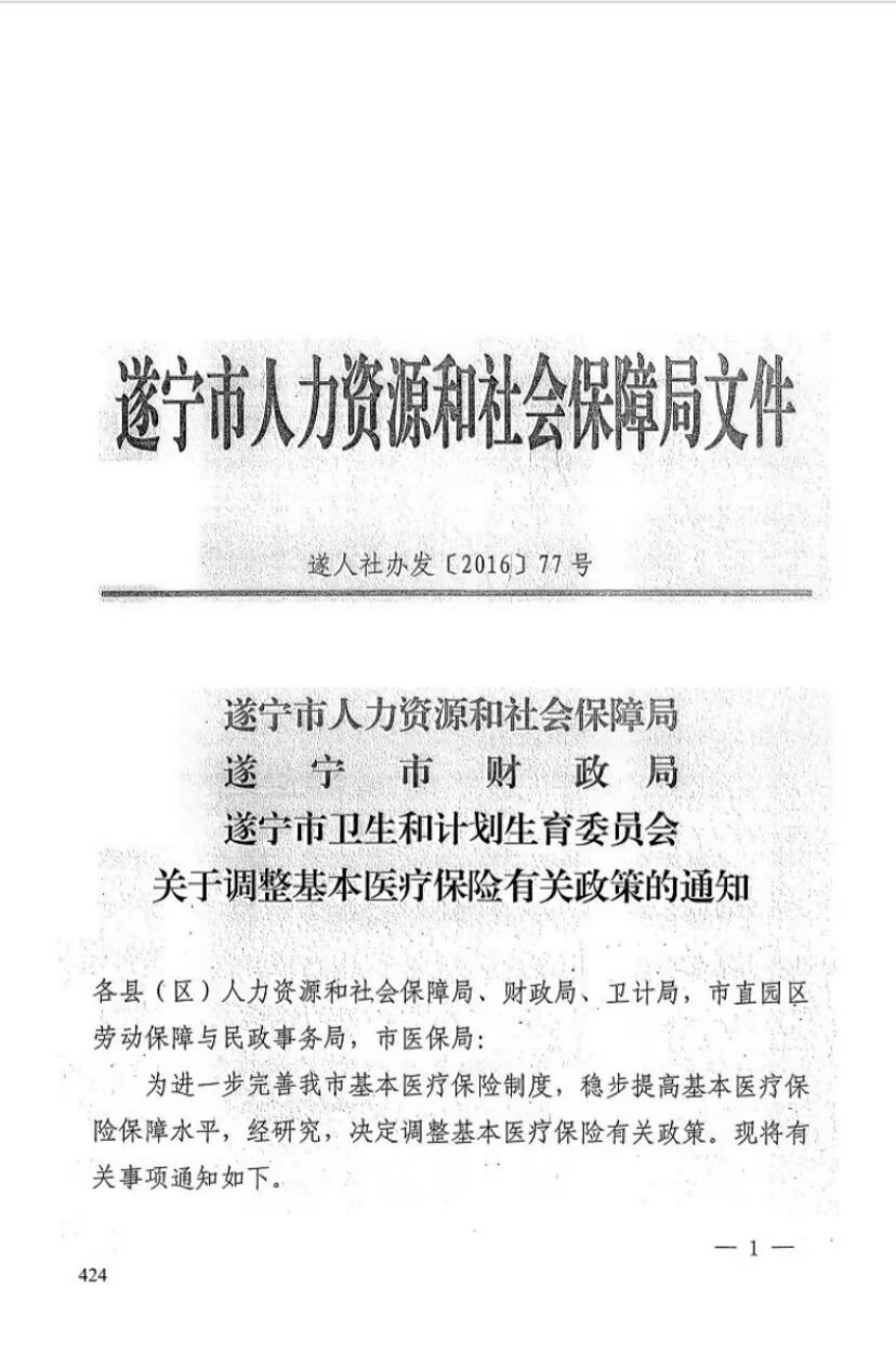 遂宁市人社局、财政局、卫计委关于调整基本医疗保险有关政策的通知