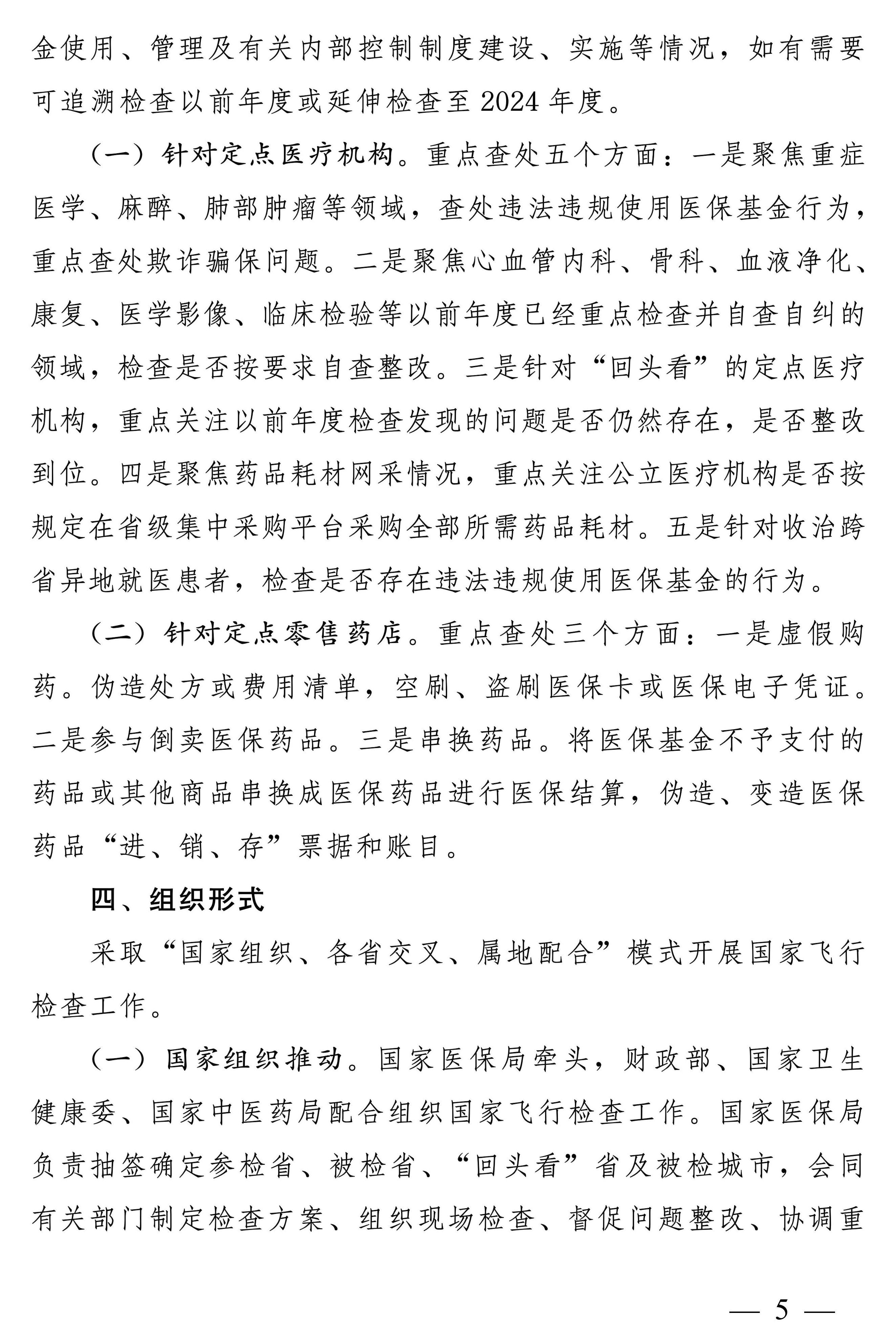 国家医保局 财政部 国家卫生健康委 国家中医药局关于开展2024年医疗保障基金飞行检查工作的通知