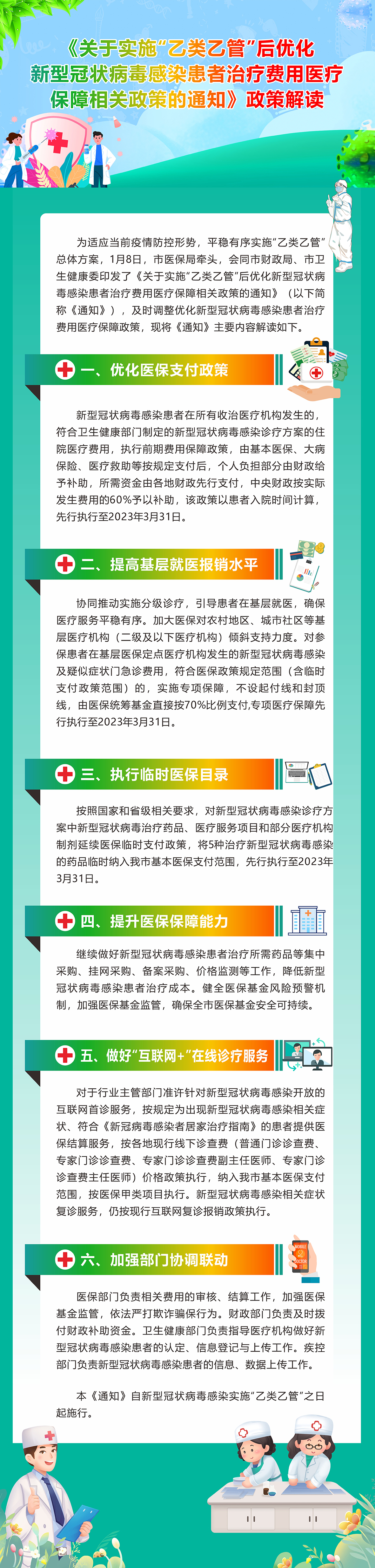 《关于实施“乙类乙管”后优化新型冠状病毒感染患者治疗费用医疗保障相关政策的通知》政策解读