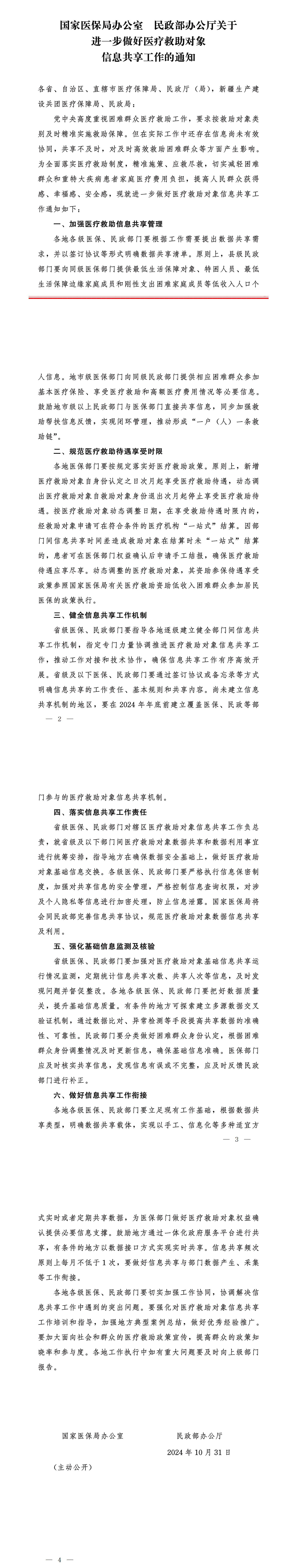 国家医保局办公室 民政部办公厅关于进一步做好医疗救助对象信息共享工作的通知