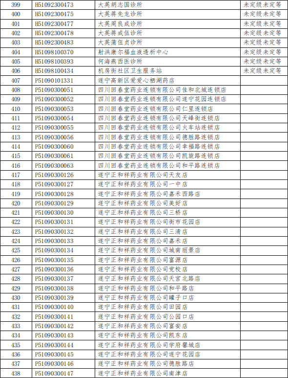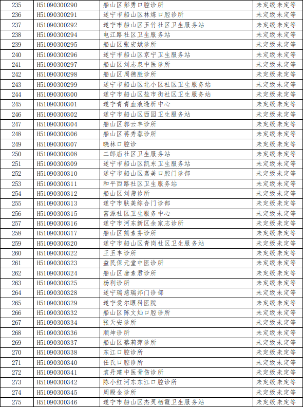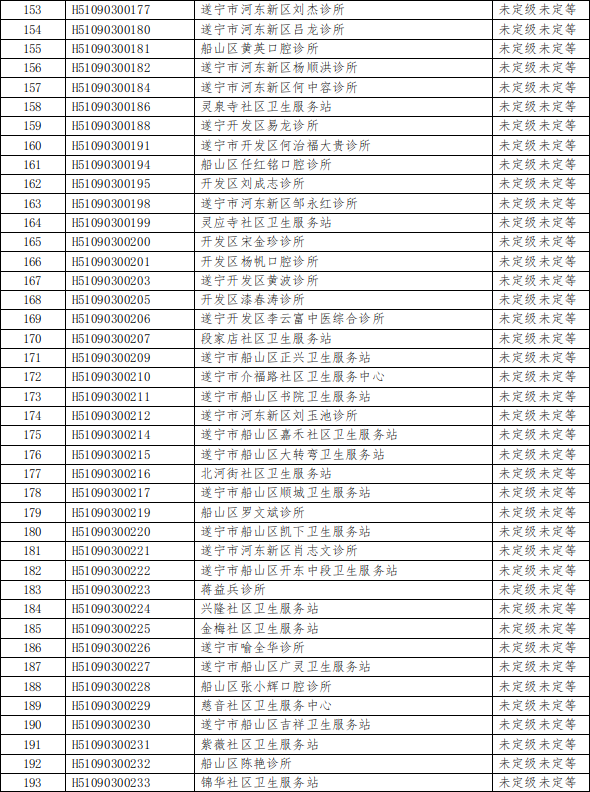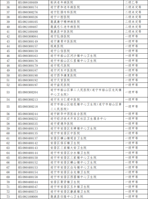 根据相关政策法规,市医保局组织全市医保部门对医保定点医药机构(医疗机构、零售药店)实行宽进严管、动态调整。对申请暂停营业的医药机构及时清理,暂停定点医疗机构24家、定点零售药店26家。截至2022年7月31日,全市共有1337家正常营业的医保定点医药机构(其中医疗机构406家、零售药店931家)为“遂宁市基本医疗保障定点医药机构”。