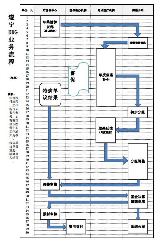 为加强我市基本医疗保险按病组点数法付费结算管理,规范医疗费用审核、结算、拨付流程,确保按病组点数法付费工作有序推进,现将《遂宁市基本医疗保险按疾病诊断相关分组(DRG)结合点数法付费业务经办规程(试行)》印发你们,请认真组织学习,严格遵照执行。