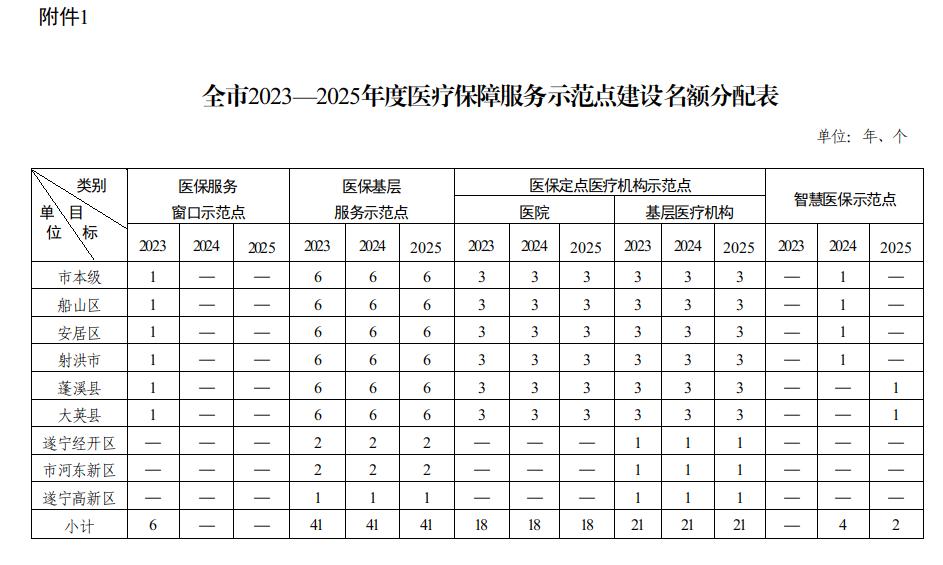 附件:1.全市2023—2025年度医疗保障服务示范点建设名额分配表